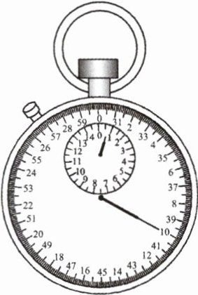 5. 为测量自己的跑步速度,某同学在一段长200m的平直道路起点开始计时,跑到终点停止计时,秒表示数如图所示。该同学跑完此段路程用时