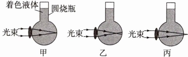 ,着色液体则表示玻璃体。(2)用平行光束照射每个眼睛模型,根据光束聚焦位置可以确定甲是