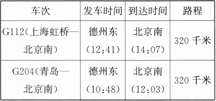 |G112(上海虹桥—北京南)|德州东(12:41)|北京南(14:07)|320千米|
