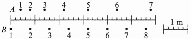 2. 某同学在探究速度的变化时,拍摄了两个小球运动过程的频闪照片,如图所示,闪光时间间隔为1 s,图中数字为闪光时刻编号。请根据图中信息回答下列问题: