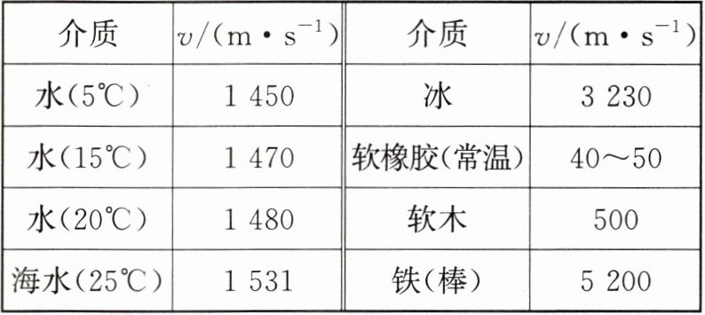 |海水($25^{\circ}C$)| $1531$ |铁(棒)| $5200$ |