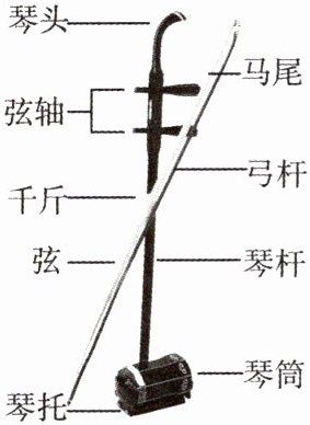 13. 二胡是中国的民族乐器,有粗(内弦)、细(外弦)两根弦,拉弓时马尾和弦摩擦发出声音,如图所示。下列做法不能改变二胡音调的是(
