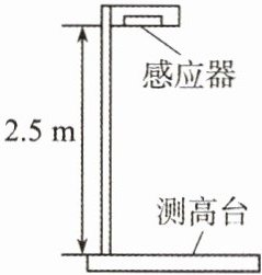 1. 如图为一种身高测量仪,其顶部的感应器竖直向下发射超声波信号,经下方物体反射后返回,被感应器接收。某同学站上测高台,感应器记录信号从发射到接收所经历的时间为$ 5×10⁻^3 s。$已知感应器距测高台的高度为 2.5 m,空气中的声速取 340 m/s,则该同学的身高为(