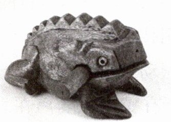 13. 如图为木制玩具青蛙刮鼓,用木棒在青蛙背上摩擦,就会发出类似青蛙的叫声,有时还能引起周围青蛙的附和共鸣。下列说法正确的是(