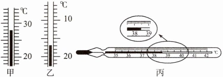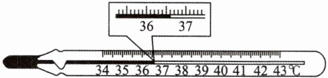 12. 如图所示体温计是根据液体______的性质制成的,它的分度值为______ $^{\circ}C$,示数为______ $^{\circ}C$。