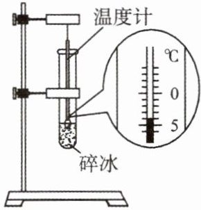 2. 如图所示,在探究冰的熔化特点时,为测量试管中碎冰的温度,应使温度计的玻璃泡与碎冰