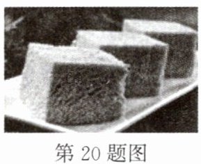 20. 如图所示,冻豆腐以其孔隙多、有弹性、营养丰富、味道鲜美而深受人们喜爱。在制作冻豆腐时,先将新鲜豆腐放入冰箱冷冻;过一段时间后从冰箱里拿出冻豆腐,经过加热,冻豆腐变得蓬松多孔而富有弹性。请解释一下,上述过程中豆腐中的水分先后经历的物态变化是