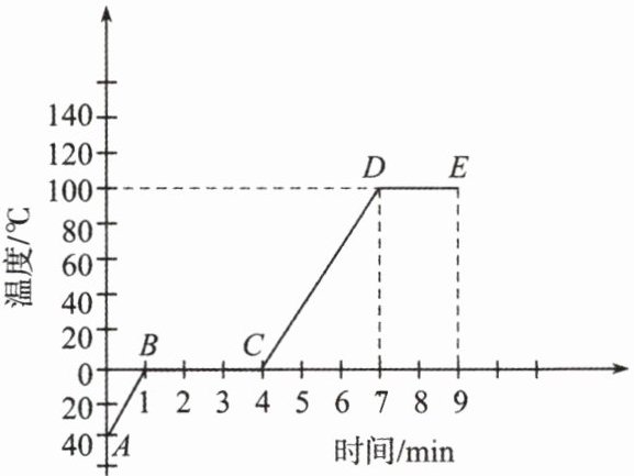 加热$2min$时,处于熔化过程中,该物质处于固液共存态;