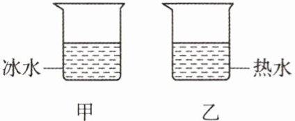 3. 暑假,某同学在两只相同的透明烧杯中分别倒入冰水和热水(如图甲、乙),一会儿发现两只烧杯的杯壁上都出现了小水珠。关于小水珠出现的位置,下列说法正确的是(
