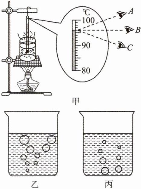 (4)实验中,某同学观察到水在沸腾前和沸腾时水中气泡的上升情况不同,如图乙、丙所示。表示沸腾前气泡上升情况的是图