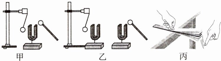 (3)如图丙所示,将一把钢尺紧按在桌面上,先让一端伸出桌边短一些,拨动钢尺,听它振动发出的声音,然后伸出桌边长一些,再拨动钢尺,听它振动发出的声音,使钢尺两次振动幅度大致相同。比较两种情况下,第