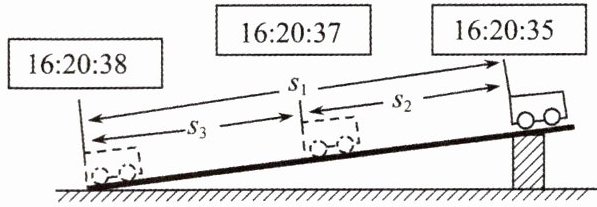 (4)由图可知,$s_3 = s_1 - s_2 = 0.9m - 0.4m = 0.5m$。小车通过$s_3$的时间为$16:20:38 - 16:20:37 = 1s$,所以平均速度$v = \frac{s_3}{t} = \frac{0.5m}{1s} = 0.5m/s$。