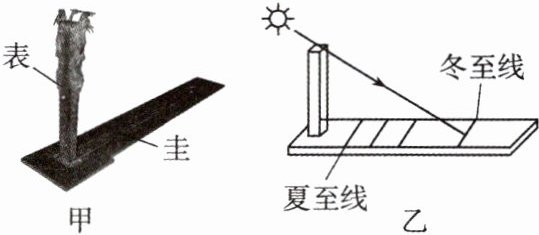 3. 如图甲所示,圭表主要包括圭和表两部分。依据正午时刻表的影子在圭上的位置,就能推算出二十四节气中的哪一节气,如图乙所示。圭表利用的光学原理是(