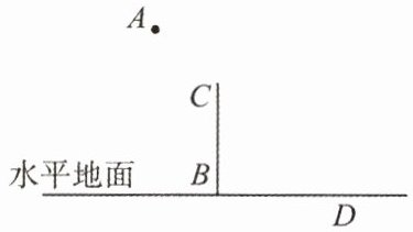 4. 如图所示,在路灯(点$A$表示)的照射下,地面上出现了小树$BC的影子BD$,请根据光的直线传播知识画图确定点$D$的位置。