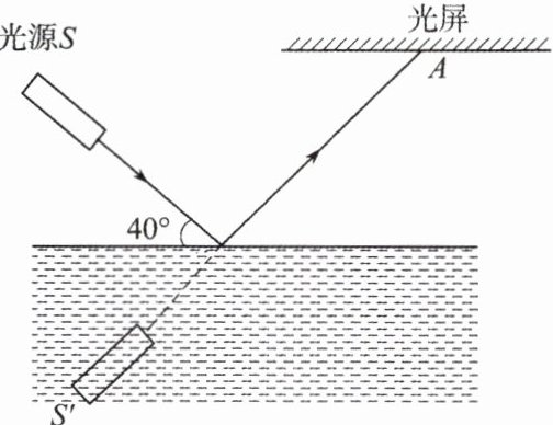 3. 如图所示,固定在水面上方的光源S发出一束光线经水面反射后在光屏上有一个光斑A,已知光束与水面的夹角为40°,S'是光源经水面反射所成的像。下列说法正确的是(