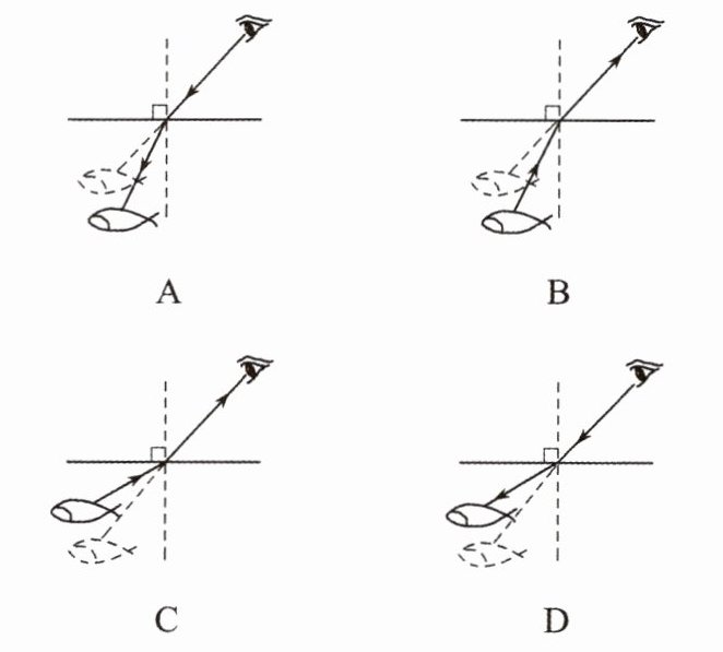 3. 岸上的人看到水中小鱼的光路图是(
