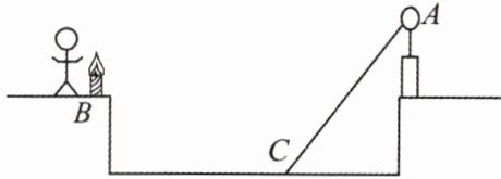 2. 一盏探照灯的灯光射向水池,如图所示,在没有水的池底C处形成一个光斑。在逐步注水的过程中,B处的人看到池底的光斑会(