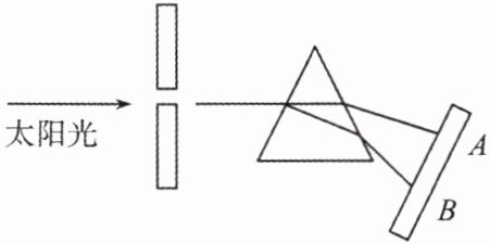 12. 如图所示,将一束太阳光投射到玻璃三棱镜上,在棱镜后侧光屏上的AB范围内观察到了不同颜色的光,则(