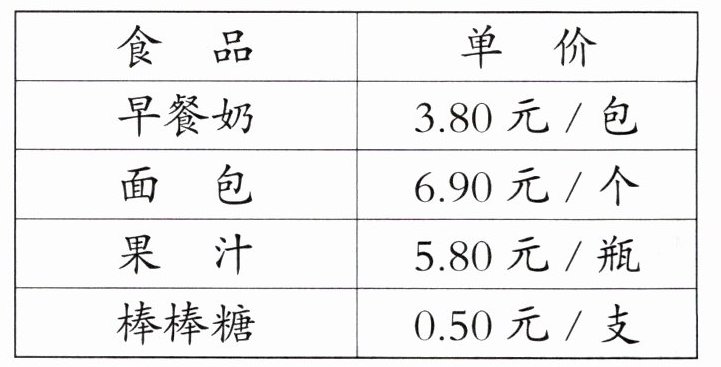 (2)用40元钱买5个面包后,剩下的钱能买多少支棒棒糖?