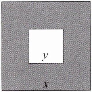 12. 如图所示,一个边长为$x米的正方形草坪中间有一个边长为y$米的正方形小水池。