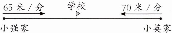 6. 小强和小英同时从家去学校,小强的速度为65米/分,小英的速度为70米/分,经过4分钟两人在校门口相遇。