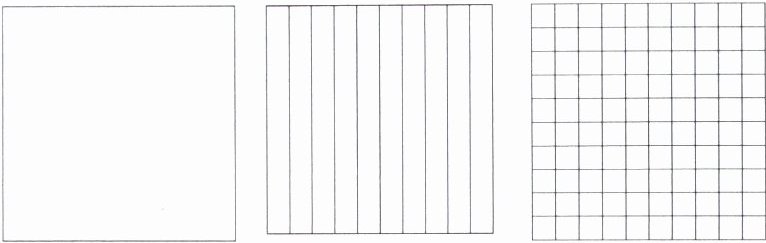 3. 在第三个被平均分成100份的正方形中,涂其中5份。