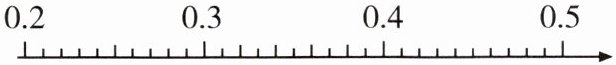 0.43在0.4之后第3个小格的位置,标注0.43;