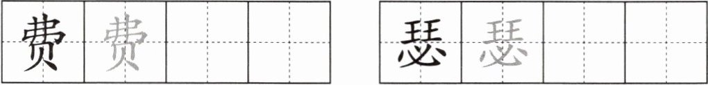 本题要求描红并书写“费”“瑟”二字,答案如下: