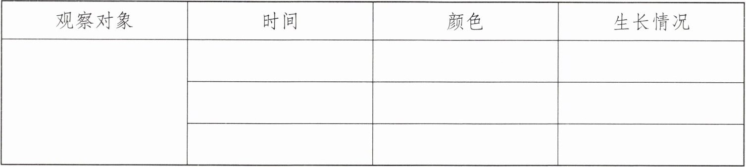 选一种植物,如大豆、花生或大蒜等,观察一段时间,试着用表格的形式,记录它的生长变化。