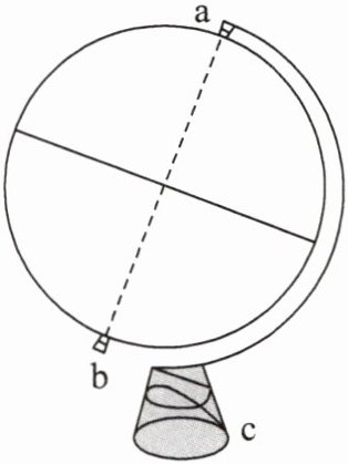 4. 张平同学学习了地球和地球仪的知识后,用乒乓球、铁丝、橡皮泥等材料制作了一个简易的地球仪(右图)。制作时,他将铁丝从a到b穿过了乒乓球。下列说法正确的是(