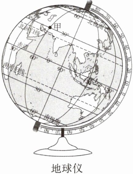 3. 在地球仪上,与甲点所在的经线组成经线圈的是(