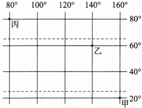 | 乙地 60°N,140°E | 东半球 | 北半球 | 东北 |