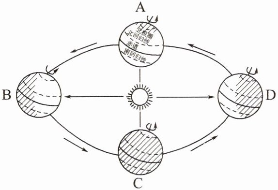 7. 读地球公转示意图,完成表格中的相关内容。