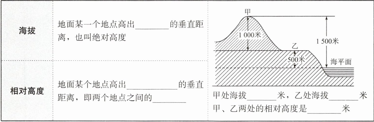 2.海平面 另一个地点 垂直距离 1500 500 1000