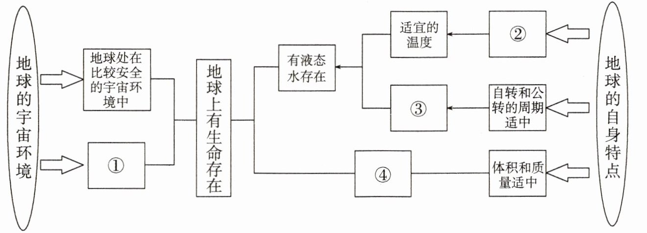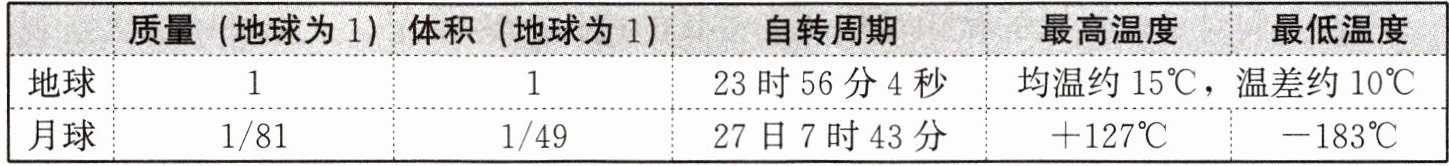 )① 体积、质量较小,没有大气层 ② 月球离太阳较远,气温较低