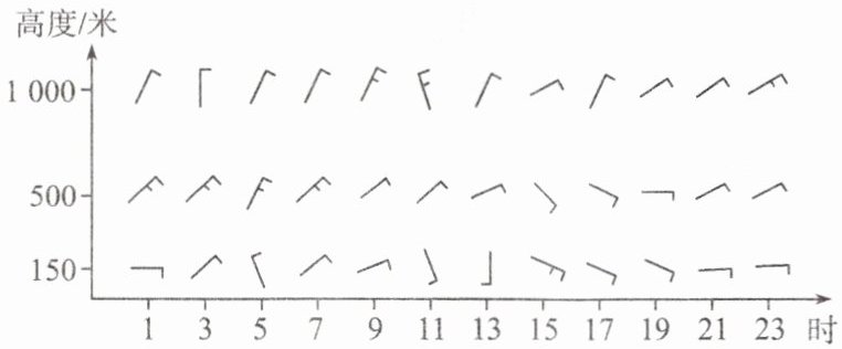 13. 当日该气象站观测场释放的氦气球,在 1 千米以下先向北飘,然后逐渐转向西南。释放气球的时间可能是(