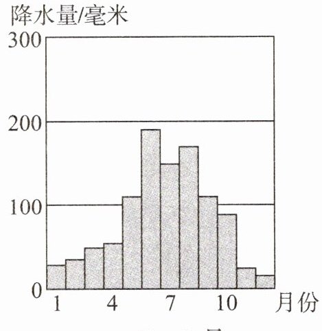 读扬州市多年平均各月降水量柱状图,完成1-4题。