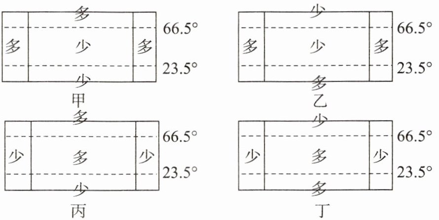学完了世界降水的分布规律之后,甲、乙、丙、丁四位同学结合亚欧大陆的纬度和海陆分布状况,绘制了亚欧大陆降水的地区分布示意图。读图,完成12-13题。
