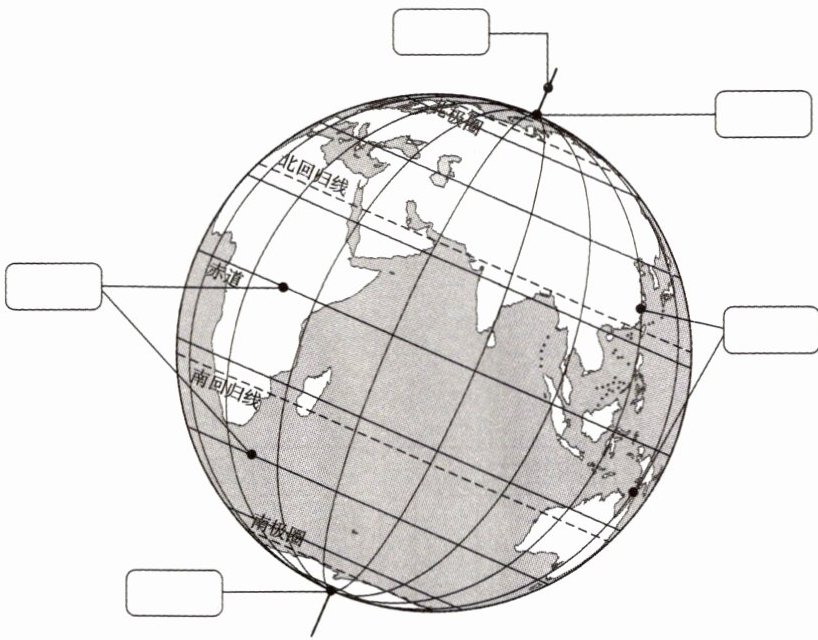 5. 地球仪上标注了很多地球上并不存在的线和点,请在下图中填出这些线和点的名称。