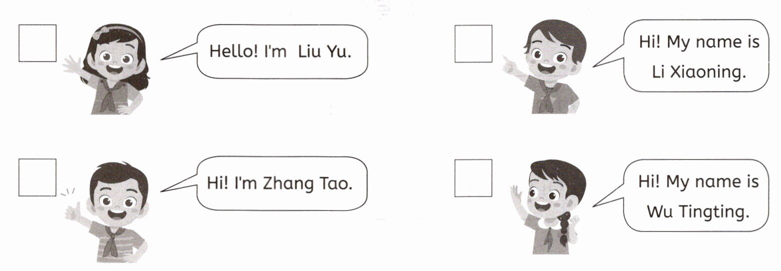 Ⅰ. Listen and number.(同学们都很欢迎齐诚,纷纷进行自我介绍。请听录音,按介绍的顺序给图片排序,将序号写在对应的方框内。)