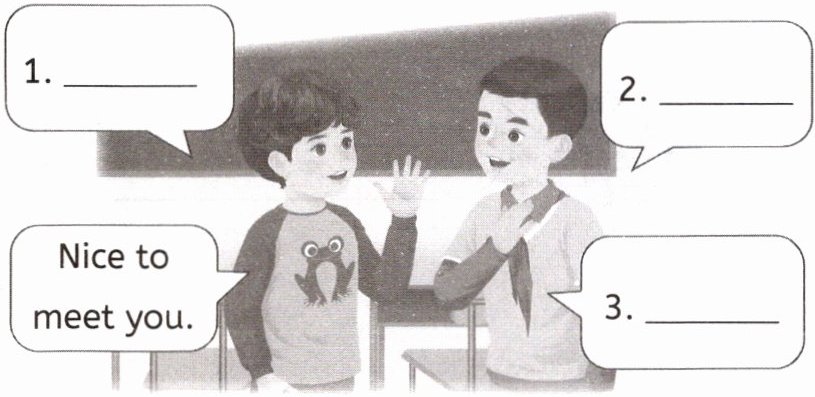 Ⅱ. Read and choose.(在英语课上,齐诚认识了教材中的新朋友,他们是怎样互相打招呼并介绍自己的?请从方框中选择合适的句子补全对话,将标号填写在横线上。)