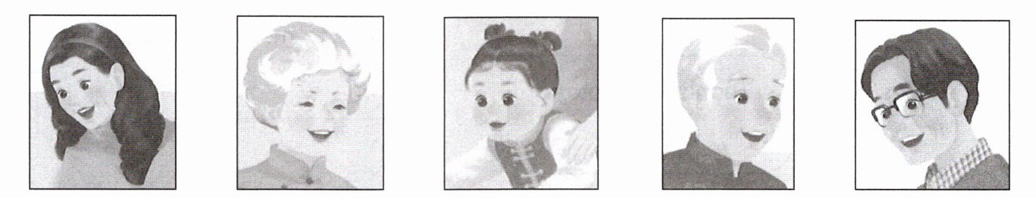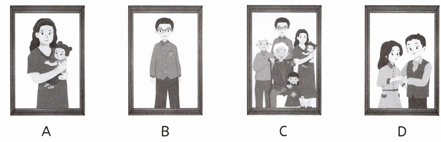Ⅱ. Look and choose.(Sarah 看到客厅的墙上有一些不同时期的老照片,你知道都是谁的照片吗?听听陈杰的介绍,试着选一选吧。)