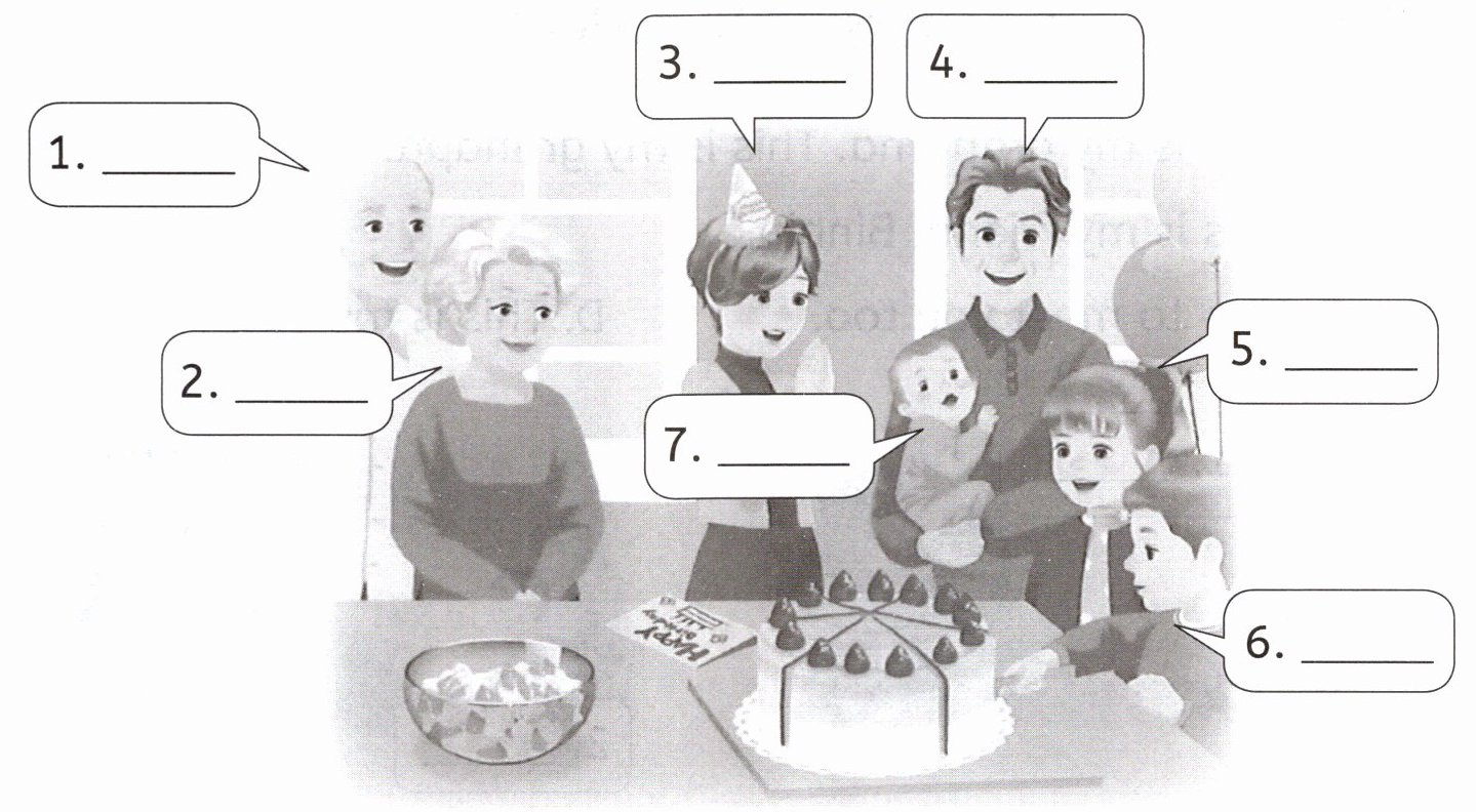 1. grandfather 2. grandmother 3. father 4. mother 5. me