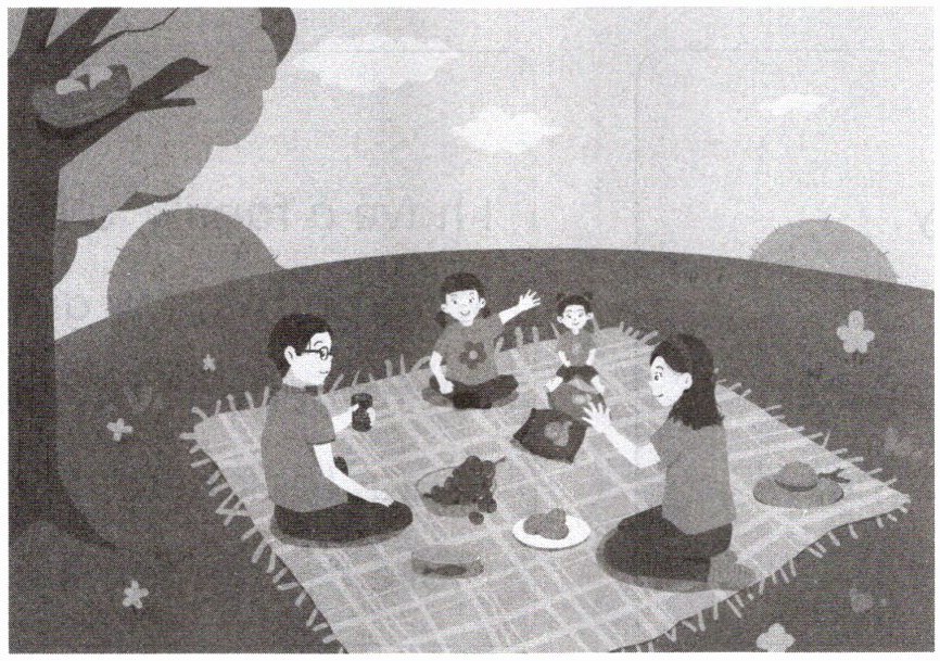 Ⅱ. Listen and write. (陈杰分享了自己一家人去春游的照片。请听录音,根据录音内容补全句子中所缺的字母。)