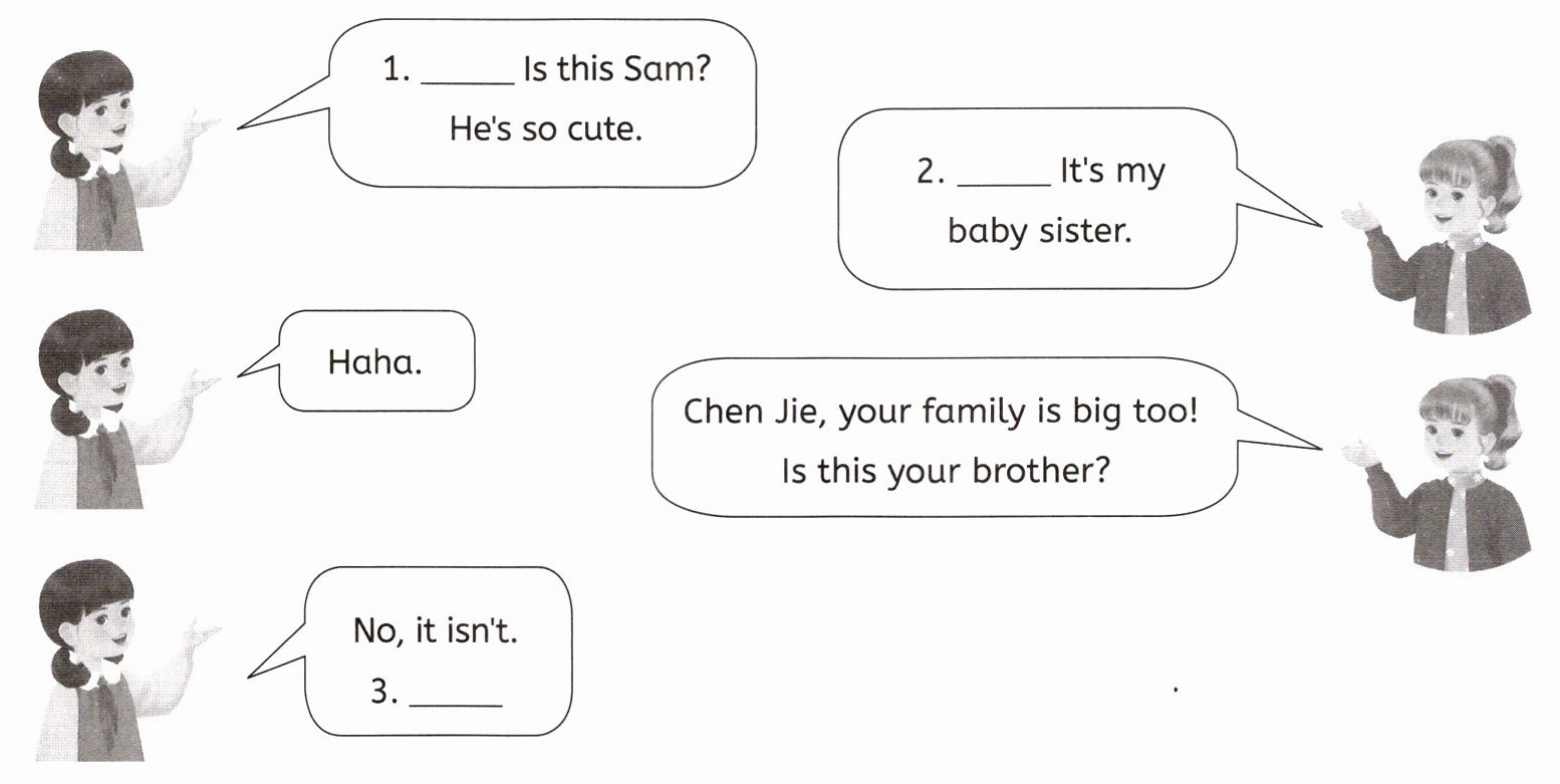 Ⅱ. Read and choose.(Sarah与陈杰正在互相看对方的家庭照片。请选择合适的句子,将标号填写在横线上,帮她们补全对话吧。)