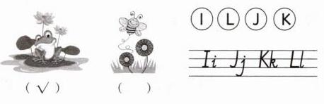 Ⅲ. Read, circle and write.(齐诚为喜欢的动物编了一首歌谣。请根据歌谣内容,猜猜说的是哪种动物,在正确的图片下面打“√”,并将每句的首字母圈出来,按字母表的顺序写出它们的大小写吧。)