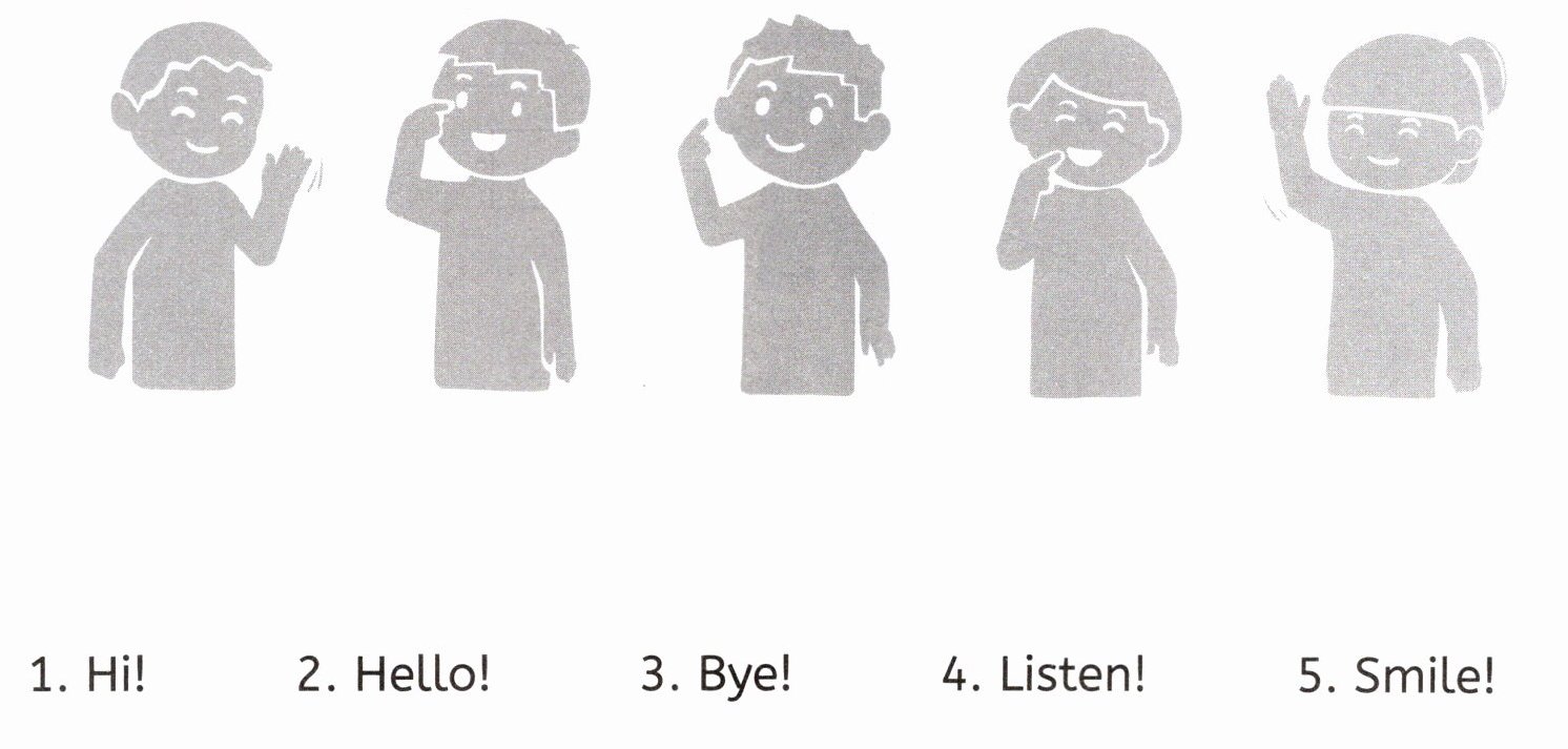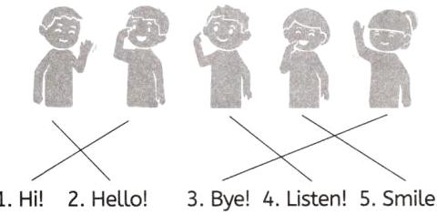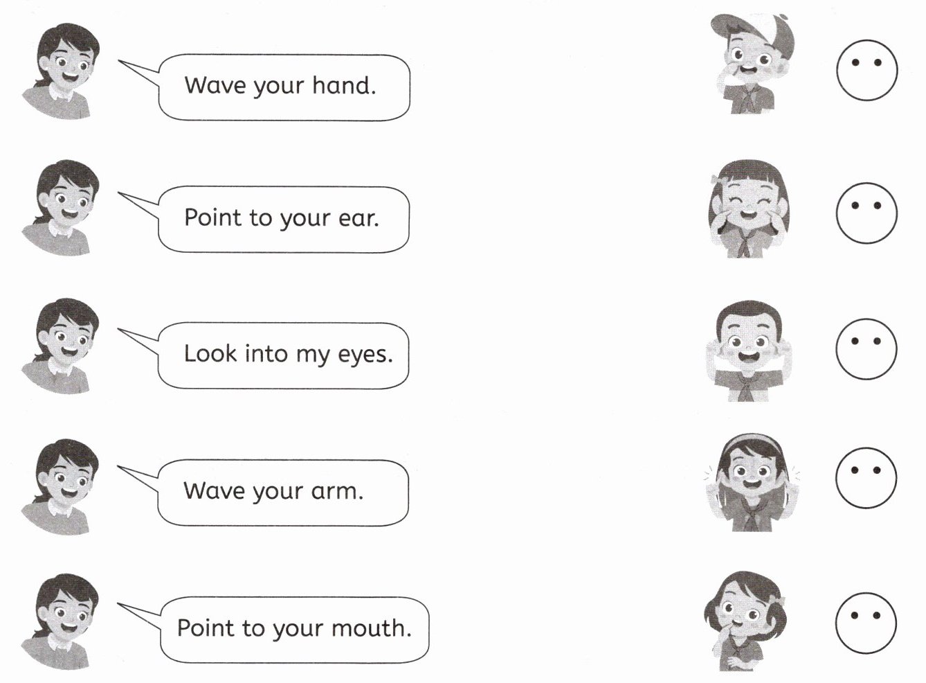 Ⅳ. Look and match.(齐诚学会了用不同的表情和肢体动作表达友好。请你将肢体动作图片与表达的友好意义连线,帮齐诚总结一下吧。)