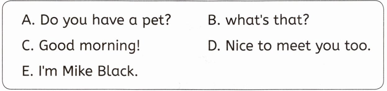 ( )4. We can share. D. Nice to meet you.