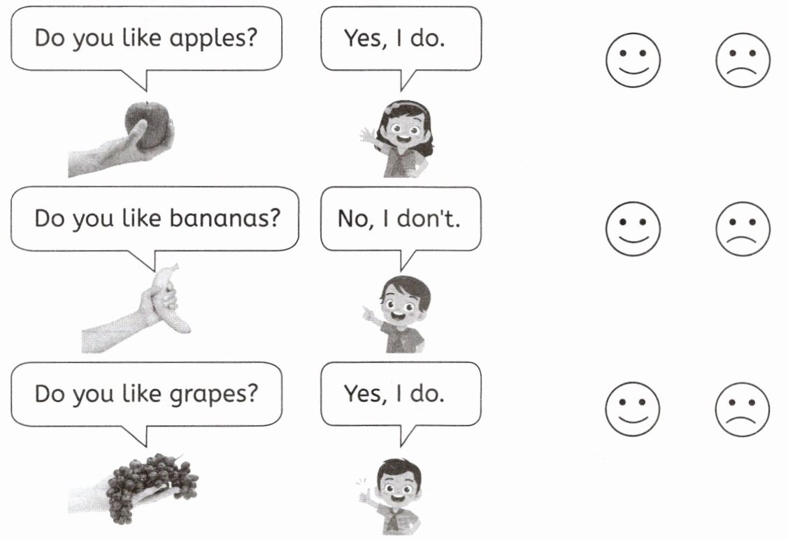 ) 3. A. Do you like apples? B. Do you like bananas?(