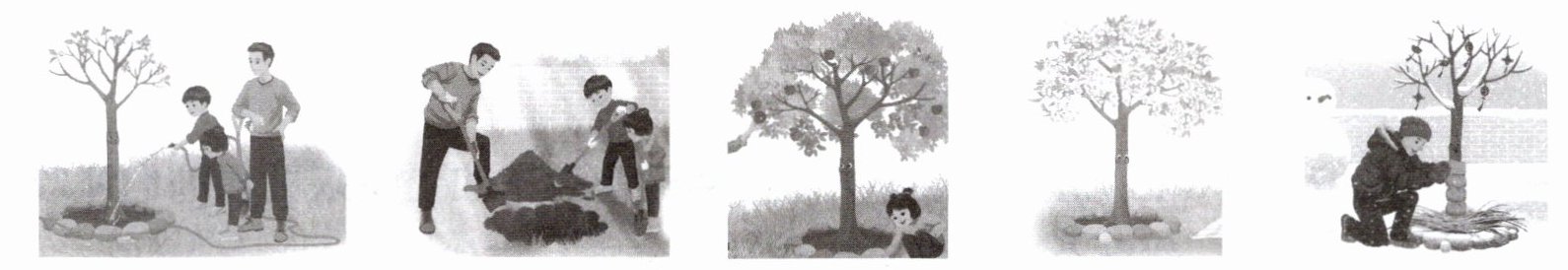 Ⅱ. Listen and number. (吴斌斌一家是怎样照顾小树长大的?请听录音,给图片排序。)